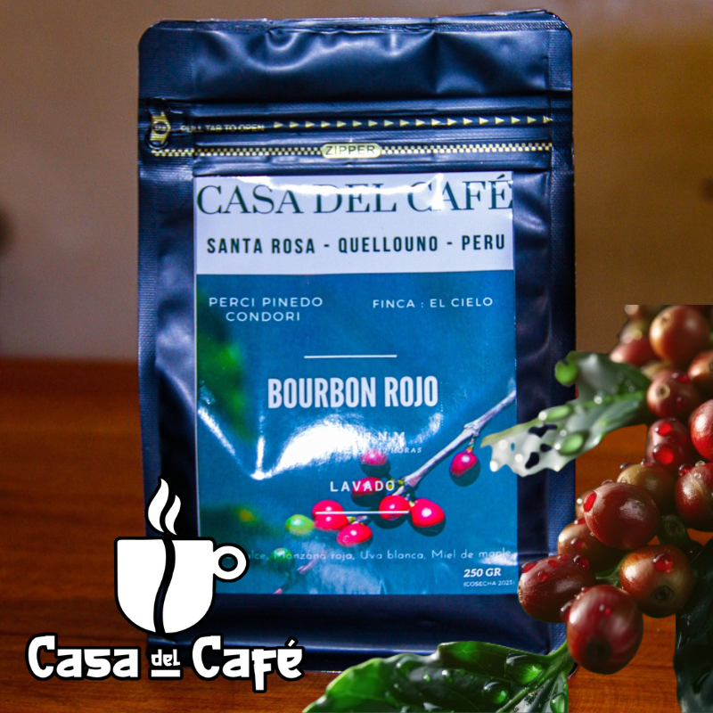 Descubre el sabor auténtico del café de altura con nuestro Bourbon Rojo, cultivado en la finca El Cielo por el productor Perci Pinedo Condori, en la comunidad de Santa Rosa – Quellouno, Perú. Este café de variedad Bourbon destaca por su proceso lavado y un perfil sensorial único que evoca notas de manzana roja, uva blanca y miel de manzano.
